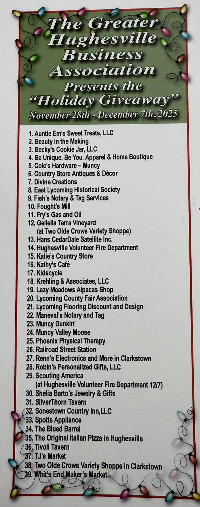 🗓️ Drawing will be held December 7th at the Hughesville Fire Hall. Don’t miss out—this is one giveaway you’ll definitely want in on!